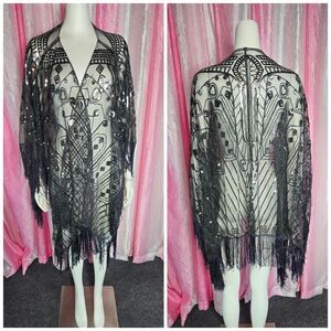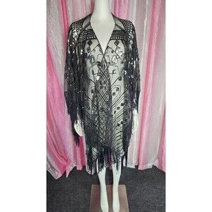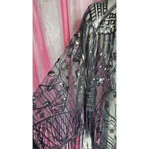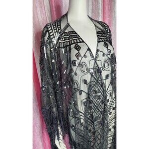 Exquisite Gray Lace Fringe Beaded Sequin Shawl Wrap One Size