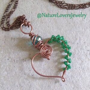 Exquisite & Handmade! Wire Wrapped Copper Heart Necklace ~ Lovers Gift For Her!