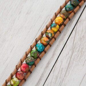 Exquisite Imperial Jasper Leather Wrap Bracelet — a vibrant, meaningful accessory.