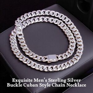 Exquisite Men's (Unisex) Sterling Silver Buckle Chain Cuban Style Necklace