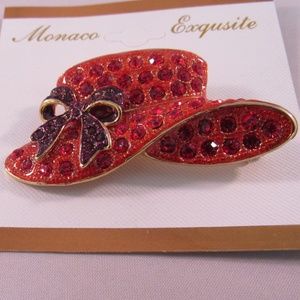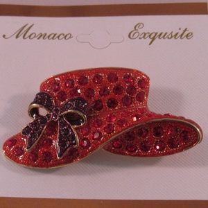 Exquisite Red Hat Brooch Rubies Rhinestones
