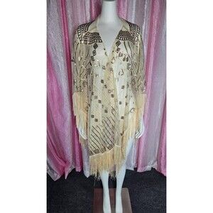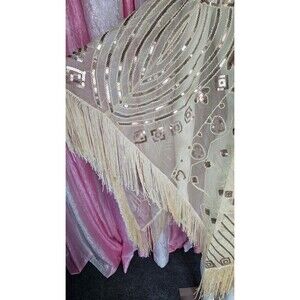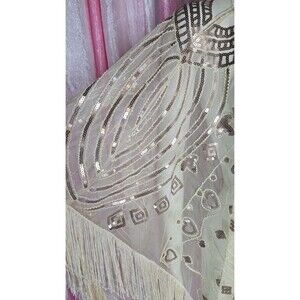 Exquisite Rose Gold Lace Fringe Beaded Sequin Shawl Wrap One Size