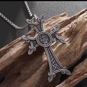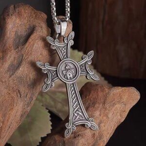 Elevate your jewelry collection with this exquisite stainless steel Armenian cross pendant necklace. Crafted for durability and style, this piece features an intricate, ornate cross design with a central medallion that adds a touch of historical elegance to any outfit. The high-quality stainless steel ensures a tarnish-resistant finish, making it perfect for everyday wear or special occasions.