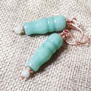 Exquisite & Stunning! Green Agate & Copper Hammered Earwires - OOAK EARCANDY!!!