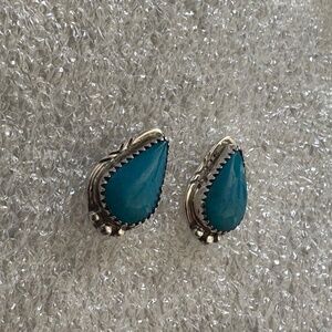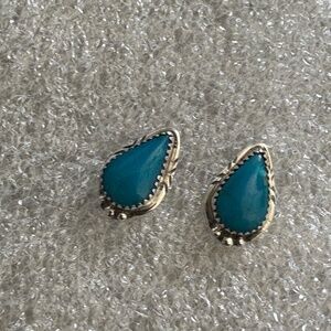 Elevate your everyday style or add a captivating touch to any ensemble with these stunning teardrop stud earrings. The classic teardrop shape offers a versatile and flattering silhouette, making these studs suitable for both casual wear and more refined occasions.Crafted from genuine sterling silver, these eye-catching earrings feature vibrant, naturally blue stones. "WR” and ‘’Sterling” stamped on the back of the earring.