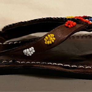 Exquisite & Unique African Leather & Beaded Flip Flops Sandals Sz 40 Multicolor