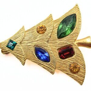 Exquisite Weiss Signed Multicolor Textured Gold Plate Christmas Tree Set