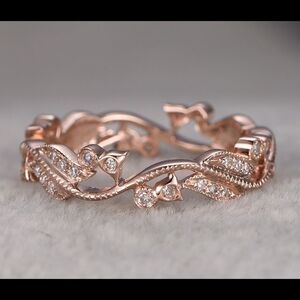 18k Gold Plated Rose Gold Floral Vine Leaf &  Diamond Ring