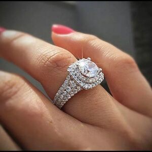 Exquisite 925 Silver Gold Filled Cz Double Halo. Ring