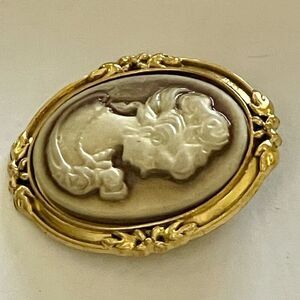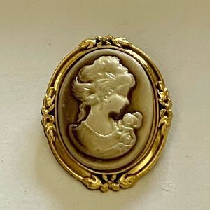 Made with high-quality materials and expert craftsmanship, this brooch features a delicate cameo design surrounded by intricate detailing.