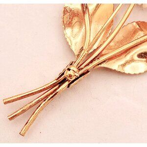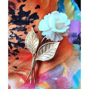 This exquisite vintage brooch features a delicate and detailed creamy rose paired with gold-toned leaves, evoking a timeless elegance reminiscent of bygone eras. Ideal for adding a touch of sophistication to a classic ensemble, this piece exudes a natural charm and understated beauty.