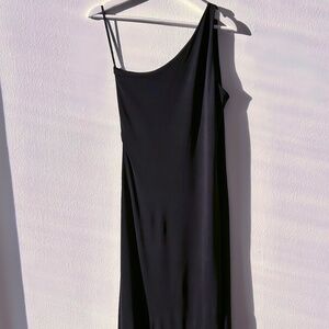 Exquisitely Simple Lauren RALPH LAUREN One Shoulder Navy Knit Long Gown. Size L