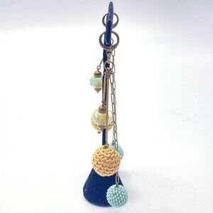 • Features: Mixed paperclip and brass bar link chains, creamy gold and sky blue beaded spheres, seafoam/crystal glass accent beads