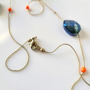 Extended Necklace / Glass Beads / Blue on Silvertone