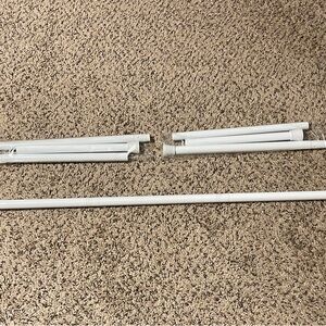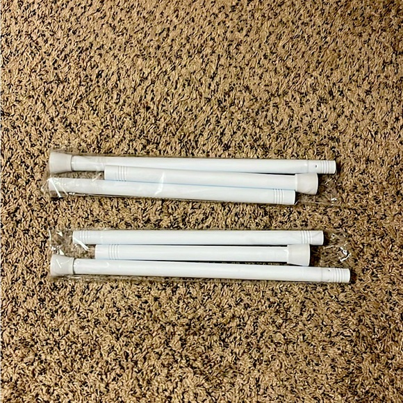 White extension rods to create additional space in the closet or to hand some curtains in the kitchen. Two sets available.