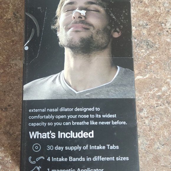External nasal dilator with 2-30-day supplies. minus 2 days. Includes 4 intake bands in different sizes and 1 magnetic applicator.