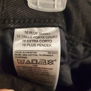 Sky-Hi straight black jeans size 16 plus short. The measurements are 38 inches at the waist with some stretch up to 40 inches and a 24 inch inseam.