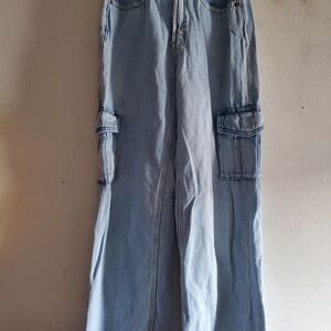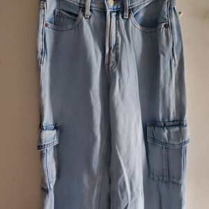 Stylish light blue cargo jeans with side pockets. Secret smooth pockets size 0 good condition smoke free home.