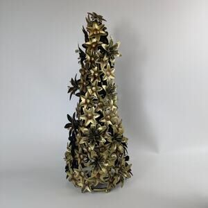 Title: Extra Large Christmas Tree Holiday Centerpiece Decor Set 2 Gold Flowers Bronze