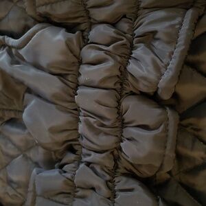 Pink and black plaid dog winter coat. Interior is quilted for warmth. Neck has Velcro adjustable closure. Belly band is elasticized and has velco adjustments on both sides. Leash opening at the collar. Silver reflective stripe across back of coat.