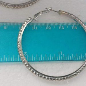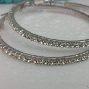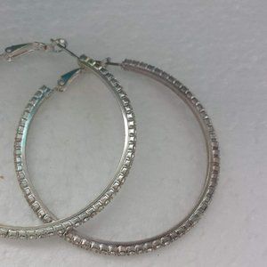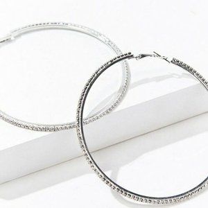 Extra Large Hoop Earrings Silver Rhinestones Large Statement Earrings