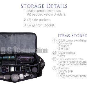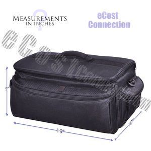 Extra Large Soft Padded Camera Camcorder Drone Equipment Bag Case This Deluxe Camera/Video Padded Carrying Case is a extra large size bag that is perfect for transporting your DSLR cameras, camcorders, lenses, flashes, etc. Product Specifications - 1 Huge Main Compartment, 2 Side Pockets & 1 Large Front Pocket: tons of storage space - Detachable Shoulder Strap: heavy-duty all-metal & nylon-fabric construction - Thick shoulder pad for ultimate comfort - Comfortable carrying handle - 8 dividers for custom fit - Rubber feet - Outer Dimension: 19"(W) x 9"(H) x 10”(D) - Inner dimension: 18"(W) x 8"(H) x 9”(D)