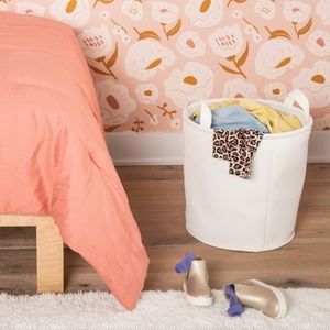Decorate and organize your kid's space in textured style with this Waffle Storage Basket from Pillowfort™. Its round design showcases a cream exterior and interior for a coordinating look that suits their decor. Perfect to fit in a shelf or to place on the floor with the flat bottom, this cream storage basket with handles provides ample space for their toys, accessories and other items to help keep their room neat and tidy.