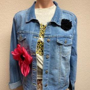 Very cute HAND MADE by Fat Rat Family Denim Jacket. Very cute jacket with a pink flower on the front. and then LIMENTED EDITION on the back.