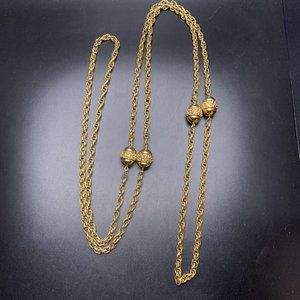 Vintage extra long gold tone acorn look station necklace; Approx 56" long; good condition