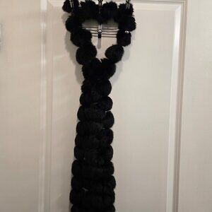 Extra Long Black Rabbit Fur Pompom Scarf #2