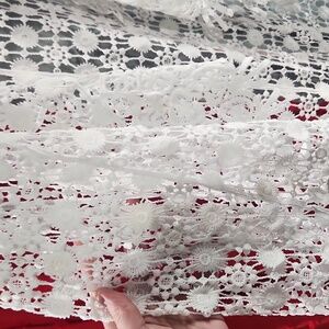 The Extra Long Floral White Jacket by Cato in size Small features a beautiful crochet-inspired design with a delicate floral pattern. Its extra-long length adds an elegant touch, making it perfect for layering over casual or dressy outfits. The light, airy fabric offers a stylish and feminine look, ideal for spring or summer occasions or winter with a more fun layered look