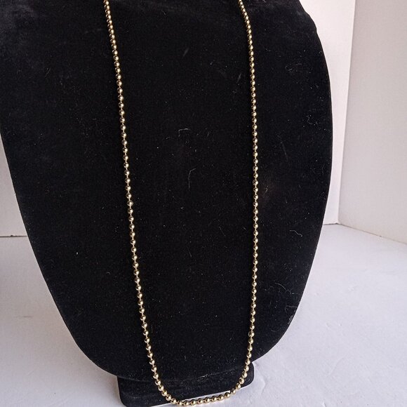 This is a simple but elegant gold colored ball chain. Can be worn solo or along with your layers of gold jewelry. In good condition, a nice quality piece.