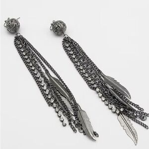 Extra long chain tassel earrings - Simple elegant silver and black metal dangles - Sparkle jewelry gift for woman - Fringe shoulder duster earrings