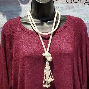 Extra Long Strand Knotted White Costume Faux Pearl Necklace Statement Jewelry
