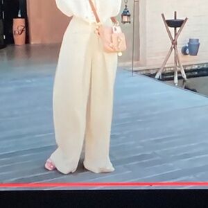Cream Woven pleated detail wide leg women's trousers from Pretty Little Thing in size US8