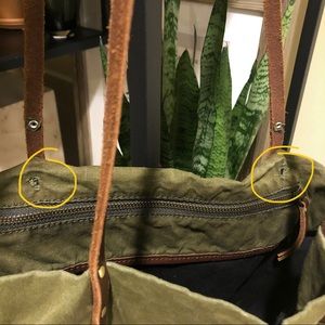 Hi @tclifton1964, I mistakenly snipped off these weird extra pieces of fabric hanging from the leather straps and it ended up making little holes in the inside 🤦♀️. But it doesn’t affect the integrity of the bag or handles. You can only see it if you look at the inside. I’m really sorry, I’m frustrated at myself for doing that. (Continued)