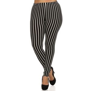 Extra Plus Size Black and White Vertical Pinstripe Leggings