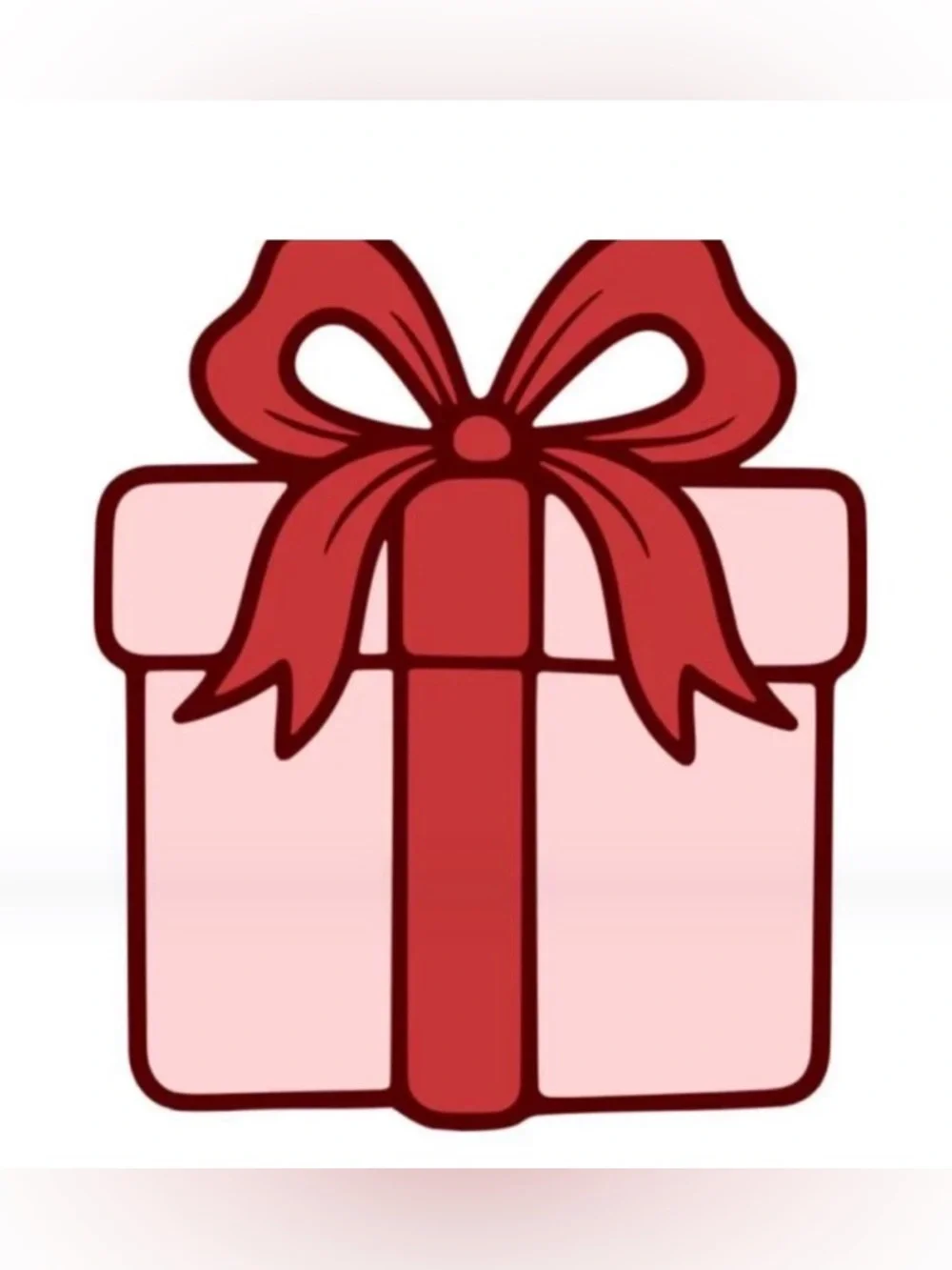 Cute pink present illustration with a bold red ribbon and bow. Clean, graphic style. Playful and festive look.