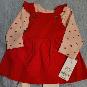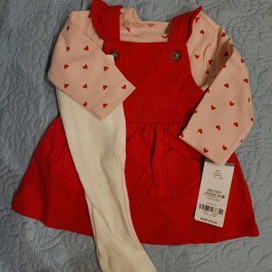 Extra Sweet! Carter's Baby 3-Piece Set-Red Jumper Pink Shirt White Tights 3M