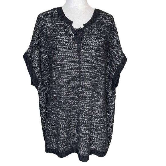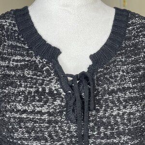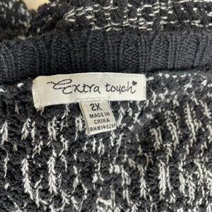 Extra Touch Women's Black Gray Sweater Scoop Tie Neck Comfy Office Sz 2X