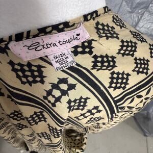 Extra Touch Women’s Duster Kimono Fringe Hem Open Front 1X/2X Black Tan Boho