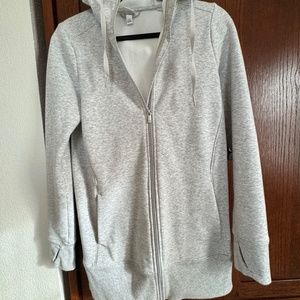 Cozy fleece hoodie with 2 way zipper. Extra long (loved that it covered my bum). Great condition.