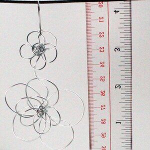 A pair of handmade wire flower earrings. Extra long stainless steel earrings with whimsical flowers .