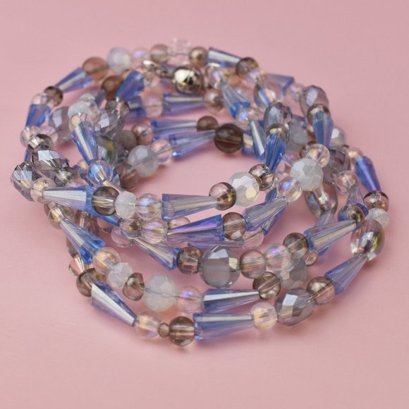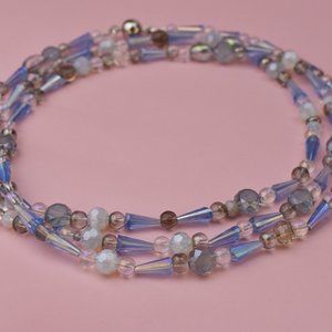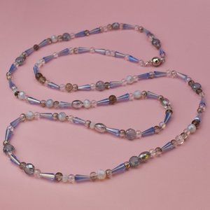 Extra long sky blue glass bead necklace, super long accent necklace
