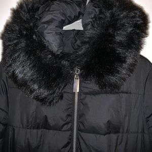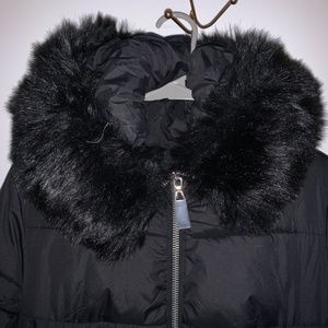 Extra long winter jacket, black, fur collar