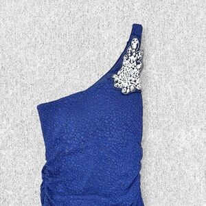 Y2K navy one shoulder glitter bodycon dress XS extra-small