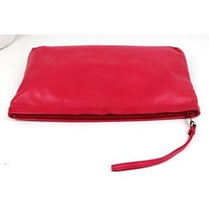 Extra Large ETRA PINKISH RED REAL LEATHER ZIP TOP WALLET CLUTCH WRISTLET PURSE