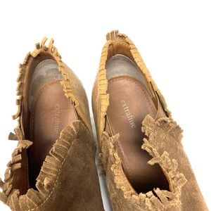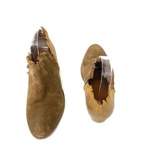 Extrafine suede leather booties. Women's size 8.5. Heel height about 1.5". In good pre-owned condition. Box not included.