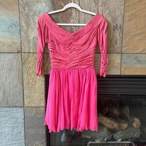 Extraordinary Ceil Chapman 1950s Silk Chiffon Cocktail Dress raspberry pink