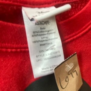 XS/XCH(1) Body: 60% Cotton, 40% Polyester. The lining is 100% Polyester. RN#71868. Color: Red Style LS42109FS UPC: 193844996209 Made in China.